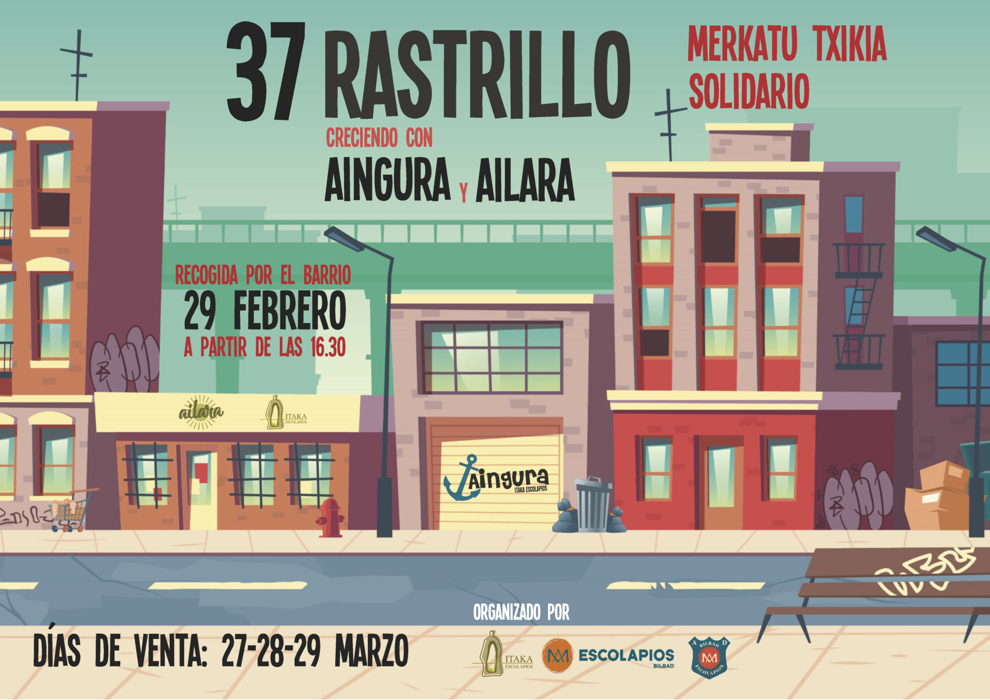 En esta ocasión el 37 Rastrillo Solidario quiere impulsar el nuevo Centro de Día AILARA que surge como respuesta a la necesidad del Proyecto Beregain, de llegar a atender de forma integral a un mayor número de familias monomarentales en situación vulnerable, ofreciendo los apoyos necesarios para su inclusión social y para una adecuada atención de sus hijos e hijas y también el proyecto socioeducativo AINGURA en el barrio de San Francisco que pretende educar en un tiempo libre saludable y educativo a la infancia del barrio de San Francisco y a sus familias.