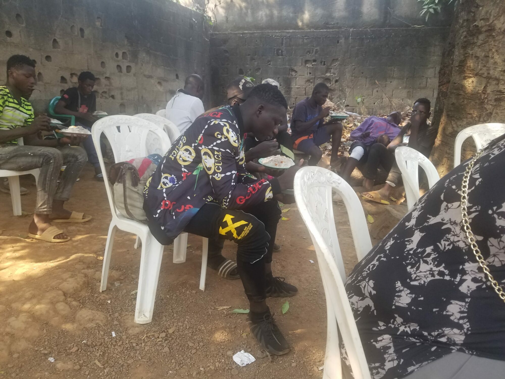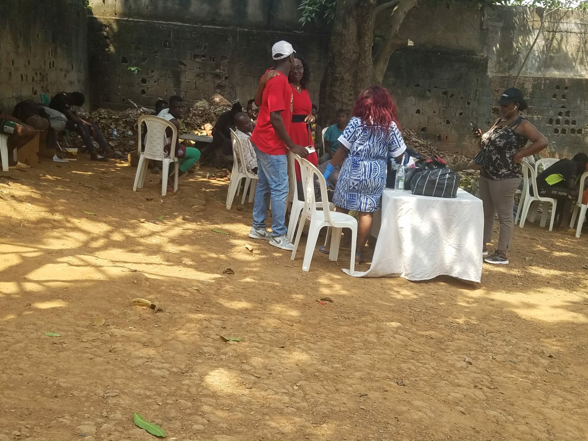Last Saturday, February 26, 2022, the field trip took place in Yaoundé to see street children. They were around sixty, mainly made up of children aged between 8 and 20 years old. Once in the field, we first made a registration because most of them have no identity card or birth certificate. We then did the consultations because they have injuries due to burns and tears with sharp objects; we made bandages and gave medicines (antibiotics and anti-inflammatories) for the wounds to heal. Finally we shared the meal we had planned for them: rice with peanut sauce with beef and foléré juice. We finished the session around 4 p.m. They were proud to receive us and to be with us.