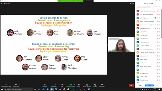 La segunda de las sesiones permitió escuchar a los equipos generales de la red: formación, comunicación, sensibilización y gestión y captación de recursos, quienes presentaron la realidad de la red en sus ámbitos y la labor que los equipos de la red están desarrollando. La información trasladada desde estos equipos ha sido seguida de un rato de preguntas y aportaciones por parte de los y las participantes del Consejo Asesor y se suma a la información que desde el área de voluntariado ya se había presentado el día anterior en el marco del encuentro mundial de voluntariado que se celebró.