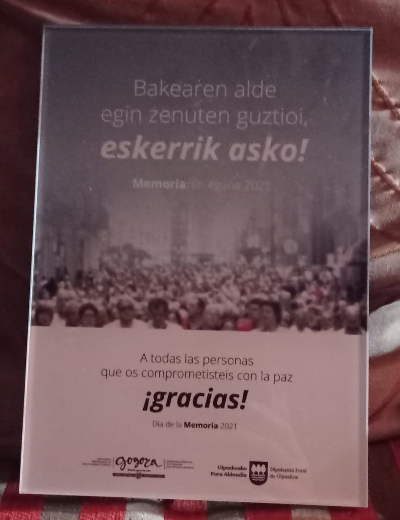 El gobierno vasco reconoce y agradece a todas las personas que se comprometieron con la Paz en Euskal Herria.